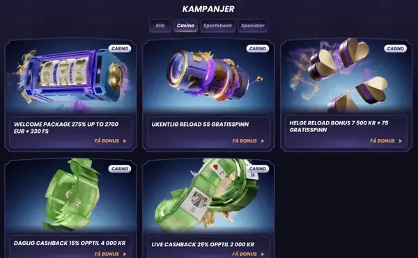 Vi holder kampanjer strukturert, slik at du kan se hva du kvalifiserer til fÞr du melder deg pÄ. Hos Funbet finner du velkomsttilbud, reload-tilbud, cashback for hÞyere nivÄer og leaderboard-turneringer. Noen tilbud kan kreve en promokode eller opt-in i kassen. VilkÄrene for din Funbet bonus vises i kampanjeomrÄdet, inkludert omsetningskrav og tidsfrister.